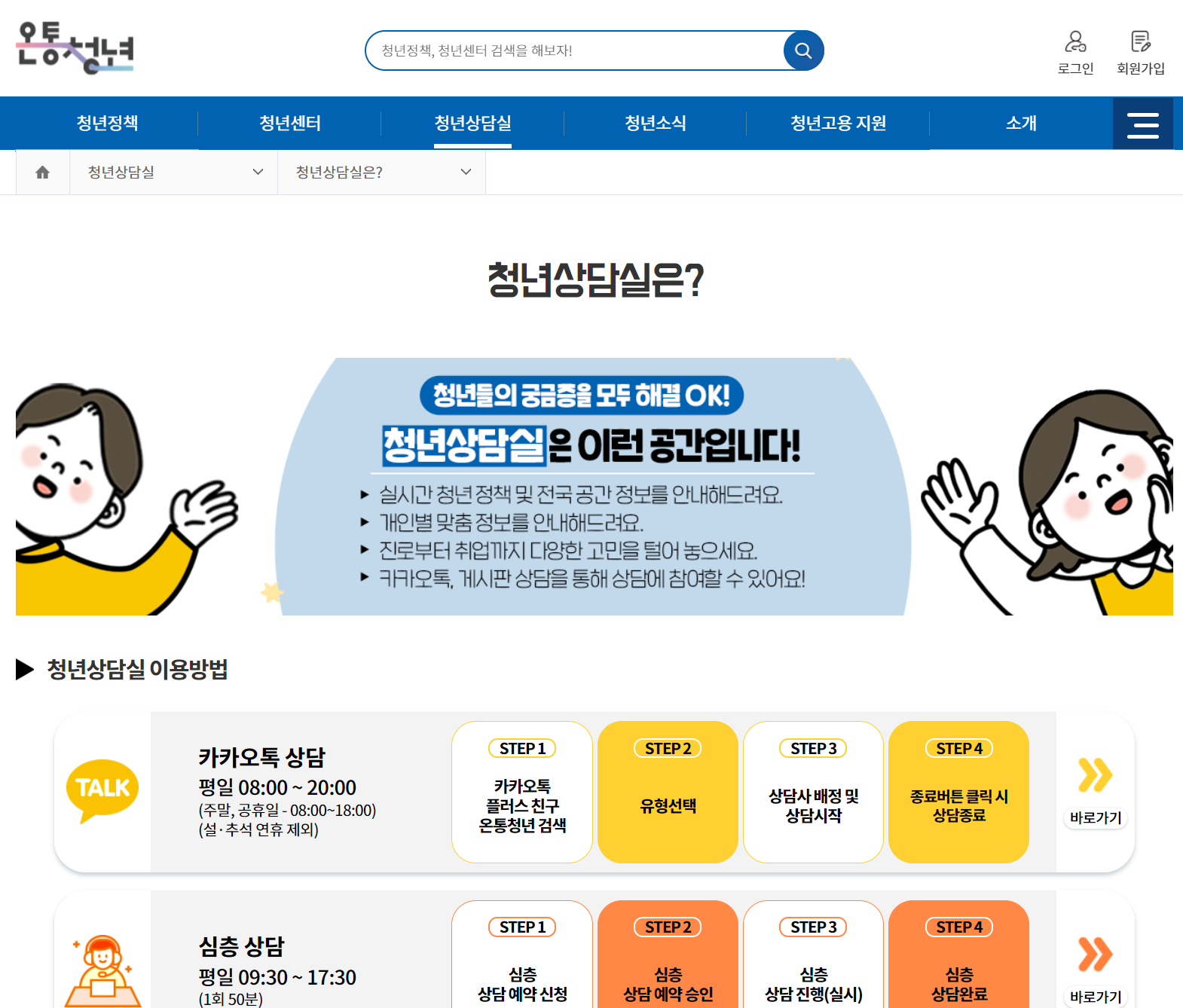 오늘은 청년 정책 및 청년 공간 정보, 청년상담까지 제공하는 사이트인 "온통청년"을 소개해드리겠습니다.