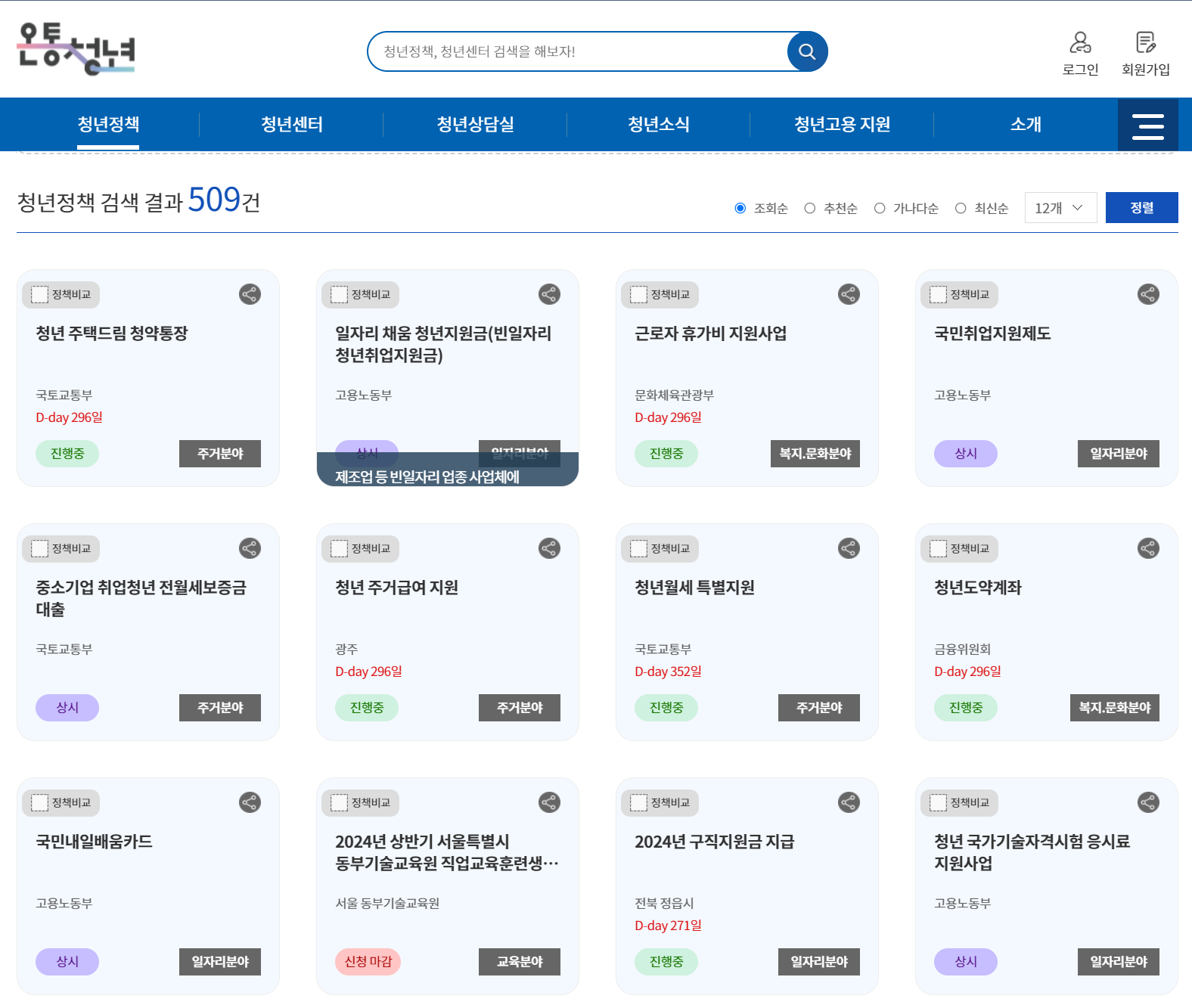 원하는 정책 유형, 지역 설정을 이용하여 검색 가능하며, 내 조건에 맞게 상세 검색이 가능합니다.