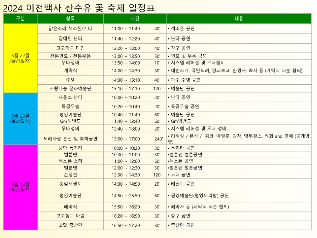 축제기간 : 2024년 3월 22일(금요일) ~ 2024년 3월 24일(일요일)